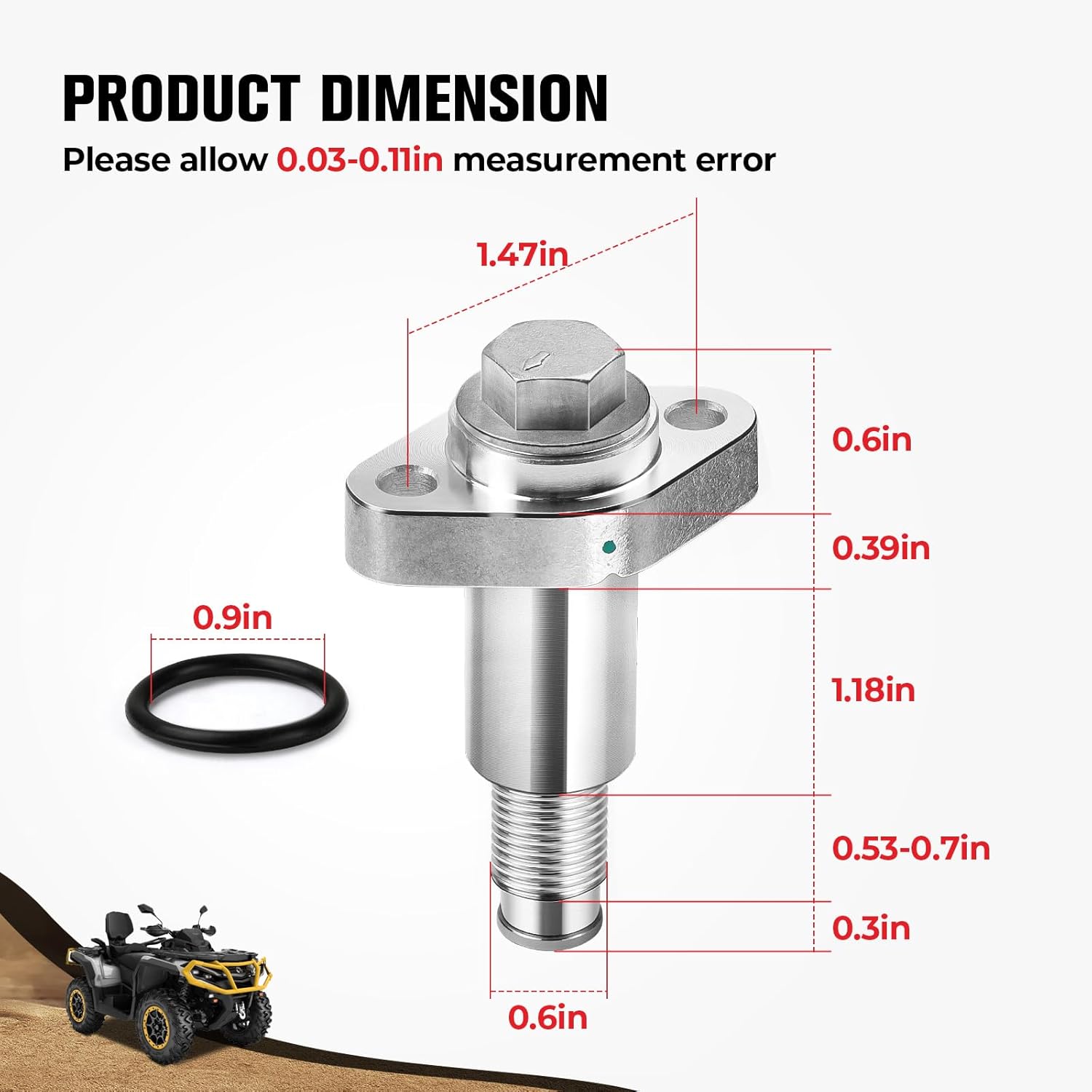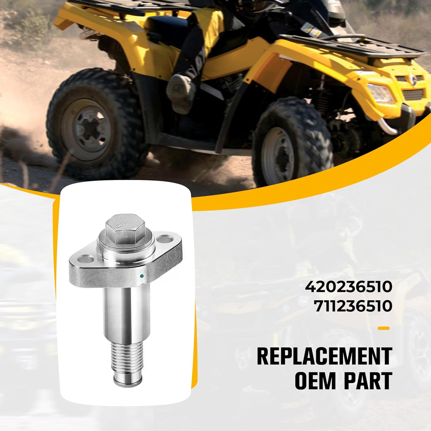 Reference OE/OEM Number: 420236510 711236510 Fits Following vehicle(s): For Can-am Outlander 330 2004-2005 Outlander 400/Max 400 2003-2014 (All Edition) Outlander 450/Max 450 2015-2024 (All Edition) Outlander 500/Max 500 2007-2015 (All Edition) Outlander 570/Max 570 2016-2023 (All Edition) Outlander 650/Max 650 2006-2024 (All Edition) Outlander 800/Max 800 2006-2018 Outlander 800R/Max 800R 2009-2015 Outlander 850/Max 850 2016-2023 (All Edition) Outlander 1000/Max 1000 2012-2024 Outlander 1000R/Max 1000R 2012-2024 Renegade 500 2008-2015 Renegade 570 2016-2022 Renegade 650 2018-2024 Renegade 800/800R 2007-2015 (All Edition) Renegade 1000/1000R 2012-2024 (All Edition) Commander 800/Max 800 2011-2020 Commander 800R/Max 800R 2011-2020 Commander 1000/Max 1000 2011-2024 Commander 1000R/Max 1000R 2018-2024 Maverick 1000/Max 1000 2013-2024 Maverick 1000R/Max 1000R 2013-2024 Maverick Trail 800 2018-2021 Defender HD5 2017-2021 Defender HD8 2016-2021 Defender HD9 2022-2024 Defender HD10 2016-2024 Quest 50/90/500/650 2002-2004 (Except 2003 Quest 50 & Quest 90 Edition ) Traxter CVT 500 2005 Traxter CVT 600 2005 Traxter HD5 2018-2021 Traxter HD8 2016-2021 Traxter HD9 2022-2023 Traxter HD10 2018-2023 For Ski-Doo Skandic V-800 SWT/Tundra 2007-2012 Legend V-1000 2003-2005 Legend Trail V-800 2007 Legend Touring V-800 2007-2009 Grand Touring V-1000 Sport 2003 Expedition 4-TEC 2004 Expedition V-1300 2008 Expedition TUV V-1000 2005-2006 Expedition TUV V-800 2007-2008 Expedition 800 TUV Yeti II 2009 Expedition Sport V-800 2007-2008 Package Included: Aluminum Timing Chain Tensioner x1