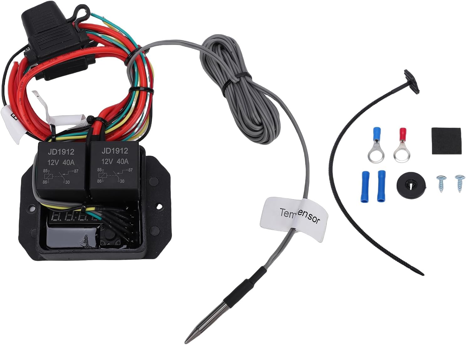 [Efficient Temperature Management]Adjusts fan based on real-time temperatures, maintaining optimal cooling for engines. [Dual Fan Compatibility]Designed for both single and double fan systems, ensuring versatility in various automotive setups. [User-Friendly Interface]Features a simple setting for temperature adjustments and an LED display for easy monitoring. [Robust Design]Constructed with ABS material, this withstands automotive conditions and consistent use. [Easy Installation]Comes with a complete kit and accessories, facilitating a straightforward panel mount installation process. Item Type: Digital Fan Controller Kit Material: ABS Working Mode: On, Off, On Rated Current: 40A Contact Type: Normally Closed Connector Type: Plug In Terminal Type: Through Hole Circuit Type: Single Circuit Mounting Type: Panel Mount Application: Suitable for Single Fan and Double Fan Circuit Type: Preprogrammed Microcontroller Screen Display: LED Digital Temperature Display Temperature Display: Celsius or Fahrenheit Temperature Range: 104°F-230°F Temperature Setting: Type Relay: Double Relay Replacement Part Number: 0444, DC0444, -0444 Compatible With: Various fan model like thermatic electric fans and Fitment: Replacement for Automotive Systems 1 x Digital Electronic Fan Controller Kit (Including 10 Accessories) Please double check the part number of your item, matching information is for reference only.