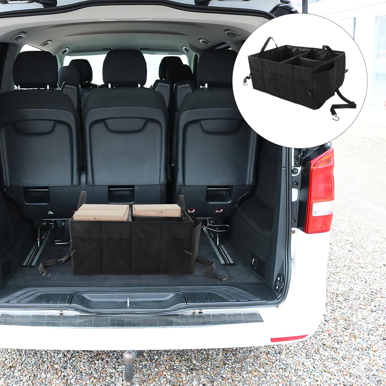 Package Include 1 Trunk Organizer Features -Material:Polyester -Size:58.00X43.00X27.00cm/22.79X16.90X10.61in -Color:Black -Product Info:Storage box -Can be easily folded and stored after finishing using it, with convenient folding design car trunk storage organizer. -Due to its large storage capacity, it keeps everything organized while giving you a clean and tidy car trunk storage for car trunk. - workmanship and simple design, match well with car decor, great for travel use car trunk organizer. -It is durable and practical, with large capacity design. Versatile and can be used for various purposes truck organizer and storage. -Convenient to store and take out the items you need, great for car trunk, home use trunk storage organizer for car.Goods Informationcar trunk storage organizer The exterior protects your items from rain, snow, and other elements.storage for car trunk It's suitable for trucks, and even cargo.trunk storage organizer for car This car trunk organizer is not only practical but also versatile.truck organizer The reinforced handles make it easy to carry and transport your items safely.car storage organizer It can be used as fabric organizer, book organizer, or as a great accessory for both men and women