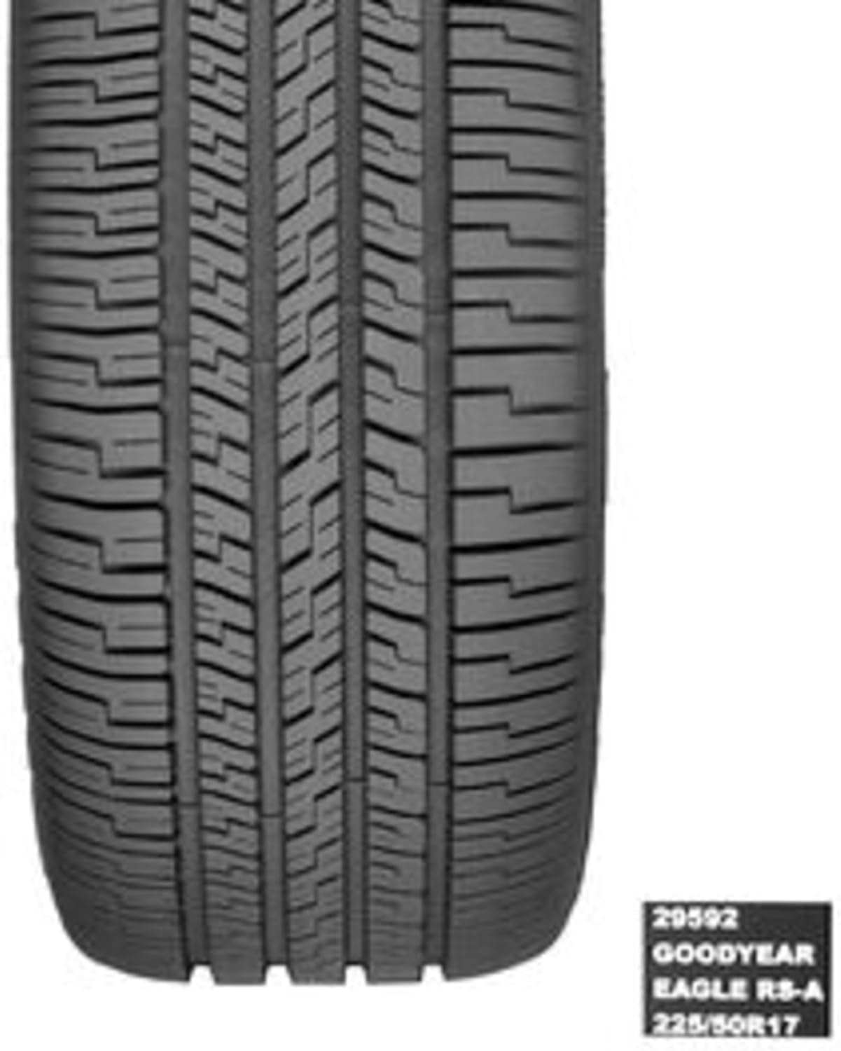 Goodyear's Eagle RS-A delivers all-season, high performance traction for sporty coupes and sedans. Its unique asymmetric tread design helps provide enhanced traction, superb cornering, and a quiet ride. Aggressive shoulder tread blocks and wide lateral grooves offer confident handling in wet, dry, or snowy conditions.