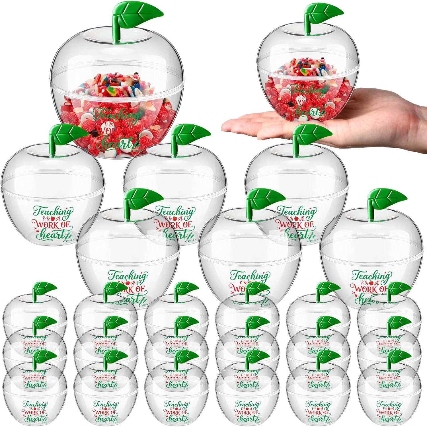 Feature: The plastic candy jars feature an attractive and charming apple design with green leaves for lifelike details. Their adorable appearance makes them ideal for decorating homes, classrooms, and more. These containers can make most parties you host a joyful and memorable celebration Use this apple container to store your favorite snacks such as candies, chocolates, lollipops, and small items such as cards, rings, etc. It makes ideal use of your desk space, keeping items organized and within reach. It's a nice gift for Christmas family, teachers, friends, and colleagues Specifications: Material: plastic Color: clear and Red Size: about 3.74 x 4.13 inches/9.5 x 10.5 cm Package include: 48 x Plastic apple container Warm notes: Please allow slight size error due to manual measurement. The colors may exist slight difference due to different screen
