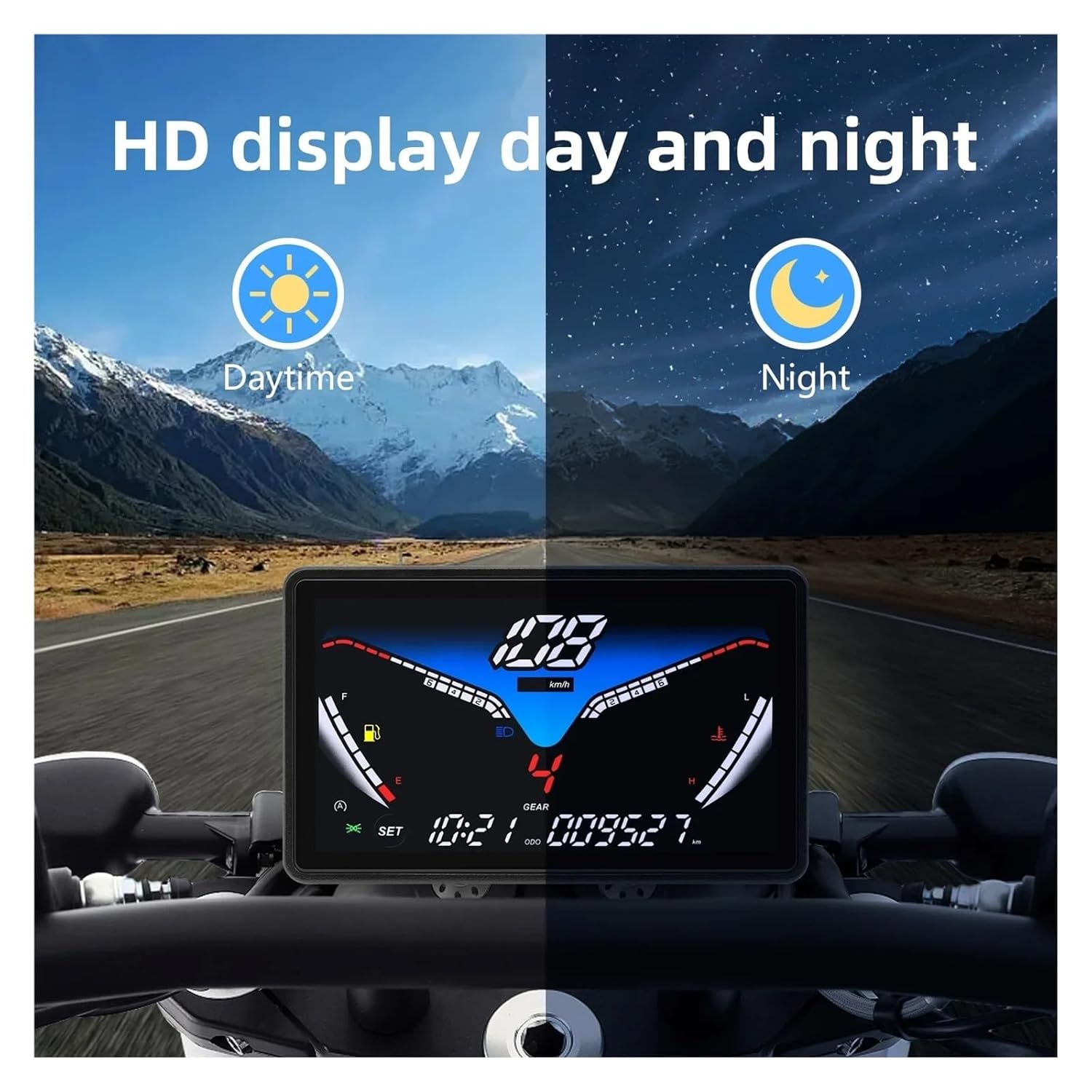 Dear friend, thank you for visiting my store. If you have any questions during the purchase process, Contact us,Thank you! Happy shopping!5inch Motorcycle Speedometer Universal Digital Odometer Instrument Dashboard 99999.9km TachometerFeatures :1.Mileage: the maximum display mileage of ODO(Total Mileage)is 99999.9km;the maximum display mileage of TRlP (Subtotal Mileage)is 999.9km.2.Speedometer:maximum speed 199km/h3.Time:24-hour system In ODO interface,long press the"SET" button to adjust time. When the digits of hour are flashing, short press to adjust hour, long press the button until the digits of minute are flashing and short press to adjust minute.Package Includes:1 x Bracketor1 x Motorcycle Meter1 x Sensoror1 x Motorcycle Meter1 x Sensor1 x BracketMaterial : Plastic【Service Guarantee】If you have any installation and product problems after receiving the goods, you can contact us, we will handle the problem properly.