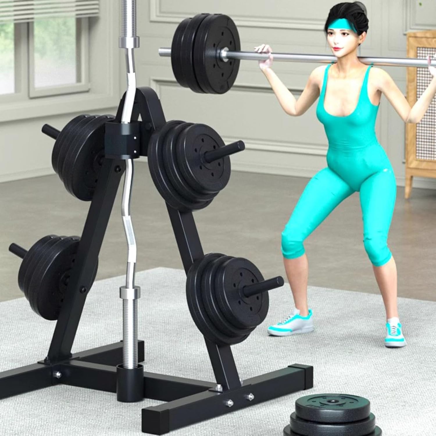 Floor space in a gym is precious. Make the most of it with the weight plate stacker which allows you to store your weight plates vertically. Bring the most optimal, efficient organization option into your gym that will help you make the most of your fitness space! Specification: - Color: Black - Material: Metal - Width: 50cm/ 19.7 inch - Height: 75cm/ 29.5 inch - Length: 52cm/ 20.47 inch - Pole Length: 20cm/ 7.87 inch - Storage Capacity: ≤ 24 Pieces - Load Bearing Range: ≤200kg/ 440 lbs Feature: - Keep your plates off the ground. - No more tripping or stubbed toes. - Steel shaft to store your barbells vertically. - Stack your plates on this platform for the most storage with the smallest footprint. Tips: - Manual measurement products may have dimensions of a few centimeters of difference, please understand. - There may be some differences between the image and the product due to display and lighting reasons, please refer to the actual product.