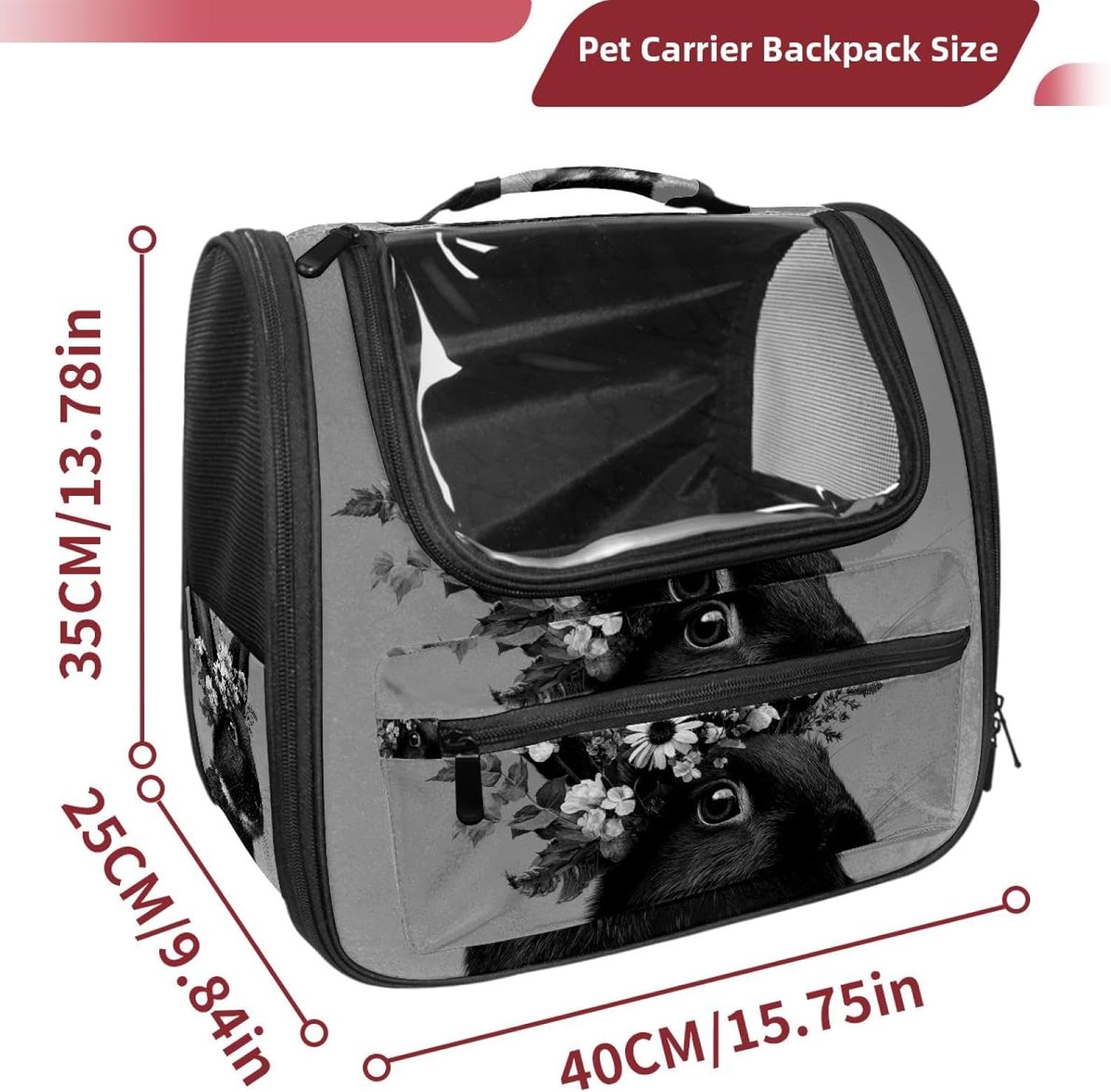Well made: Cat Backpack Carrier is made from 900D oxford fabric, pp webbing, velvet, nylon, which is very sturdy, environmentally friendly and breathable. Not easily scratched by pet’s claws, pet backpack carrier is SAFETY & ANTI-SCRATCH. The back padding will give you a comfortable and breathable experience. Ventilated Backpack: With a breathable window in the front, this pet backpack allows cats to enjoy the sun without feeling stuffy. There are two side pockets and one big front pocket, and you can take foods or toy for your kitten pet. It is big enough for cat to turn around, and there are side pockets and hook holes, you will enjoy the greatest convenience when taking your cat out. Perfect size: Cat carrier is 15.75x9.84x13.78in/40x25x35cm. Fits most small/medium sized cat, dog, and pet. Quality fleece bed provide a comfortable place for your pet. Lightweight and easy to carry to all places. Built-in harnesses keep your naughty friends from escaping. Removable cosy mat for easier cleaning and let your pet enjoy it inside. Easy to carry: The adjustable shoulder strap of pet carrier bag help you hands-free carrying and makes it the most safe and convenient pet carrier bag for your travel. Seat belt design provide pets with safety protection throughout the trip. Pad protection keep your pets comfortable during travel. Unique Design: Innovative inside graphic design gives you a stereoscopic 3D visual experience. You also send us the photos you interest to make your unique dog or cat carrier. Pet bag is also a amazing gift for pet lover.