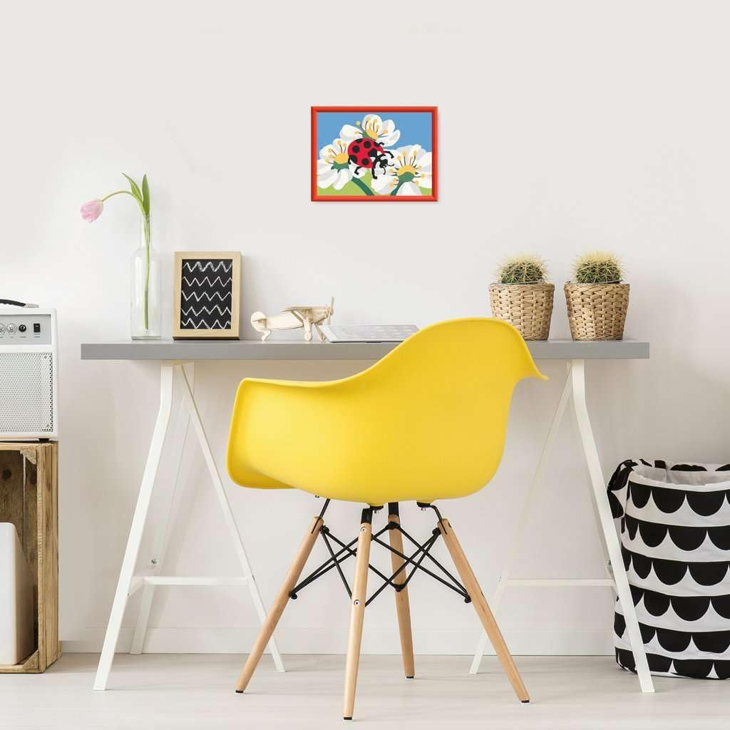 Coloured motif lines: greater colouring fun and a more beautiful result. Thanks to the coloured motif lines, children can see the whole motif ladybirds and the colours faster. The brush has good guidance and thus creates a perfect picture. The beautiful motifs for colouring are a great gift idea for children aged 7 and over and a beautiful decoration. This painting set contains 9 ready-mixed acrylic paints. Packaging design may vary.