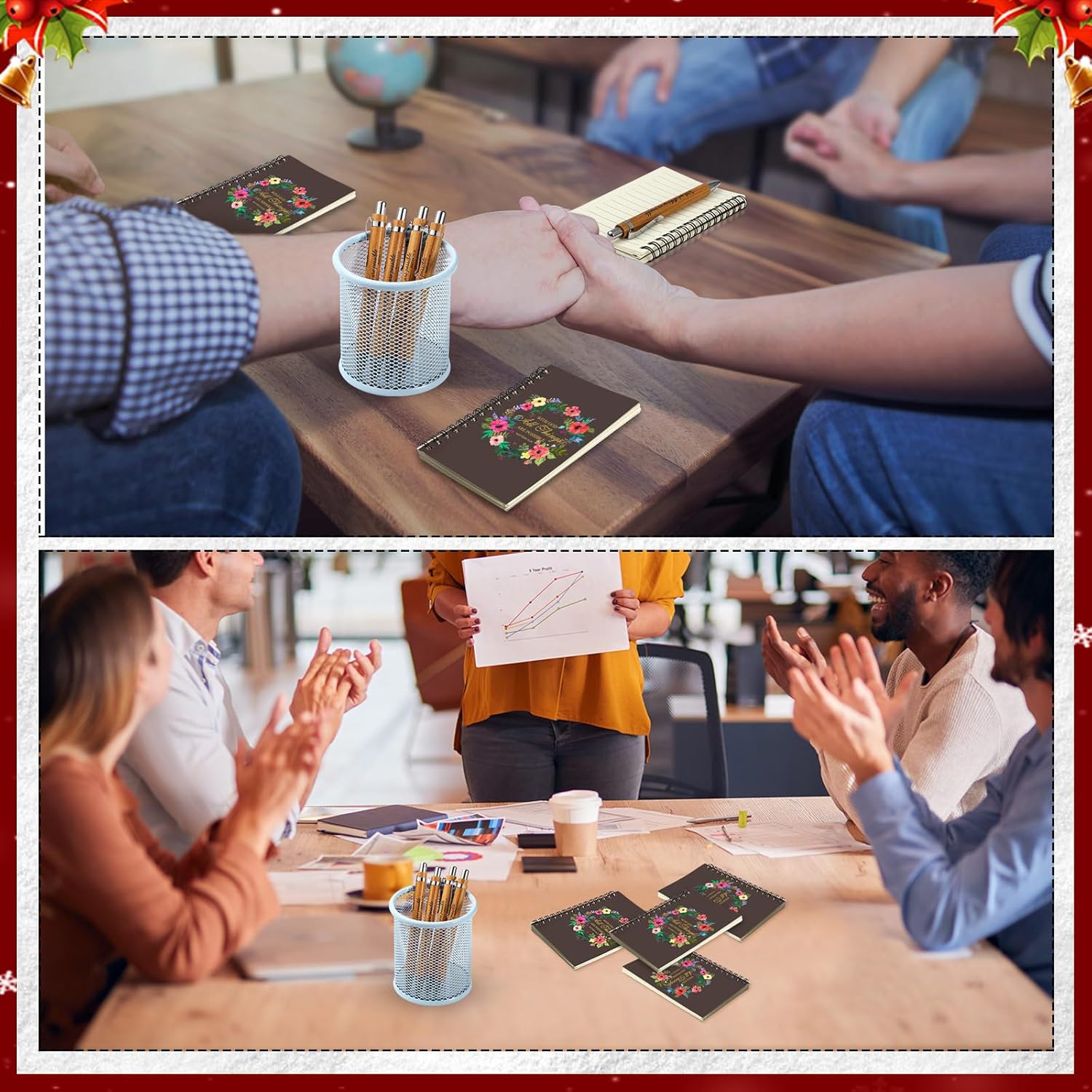 Features: Exquisite journals: Wirebound journals have a beautiful and stylish cover design with a colorful wreath and foil stamped scripture on the cover for an elegant look. Specifications: Material: 300 GSM kraft paper cover and 50 sheets of lined paperColor: as shown in the pictureSize: Coiled notebook: 3.9 x 5.51 inches/ 10 x 14 cmPens: 5.5 inches/ 14 cmPackage includes: 50 x Bible verse coil notebook50 x Bible ballpoint pen