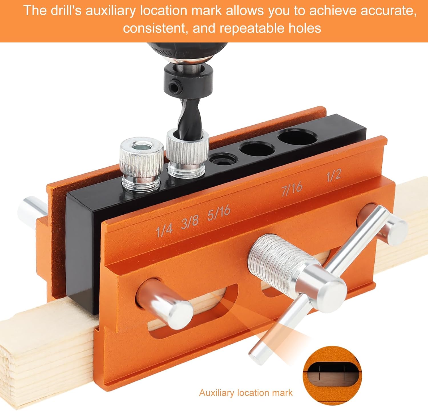 • Efficient & Precise Drilling: Our automated central positioning mechanism ensures that holes are perfectly aligned at the block's center, delivering accurate, consistent, and repeatable results. Even beginners can easily set up the jig, thanks to the auxiliary location mark. This doweling jig is versatile enough for making shelves, cabinets, tables, chairs, and railings.