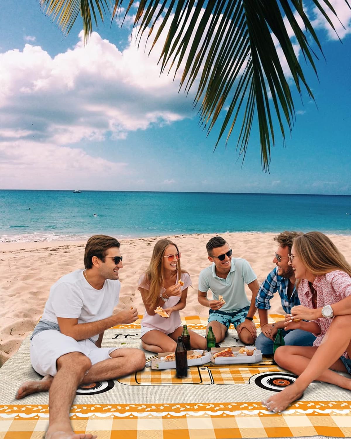 In this hot summer, are you ready to take your family to play at the beach or have a picnic in the park? When the holidays come, enjoying the outdoor air, enjoying the seasons, and enjoying the freedom is essential!Beach/Picnic Blanket ---- A versatile and perfect companion for your home and outdoor activities! Schedule an outdoor party or picnic/beach vacation with family or friends on a sunny day.✔ This beach blanket is lightweight and comes with a storage bag, so it's easy to carry and doesn't take up any space at all!✔ Waterproof, wetproof, sandproof function can make beach mats spread on lawns and beaches while keeping food and clothes clean.✔ Multiple size options can give your kids and pets a comfortable playing area.✔ Very easy to clean, easily shakes and wipes away dirt, mud, wet grass and beach sand. You can put it in the washing machine to save you time and hands free.✔ The practical and beautiful design will definitely bring a good mood and add more fun to the outdoor travel while camping with friends.✔ Printed designed beach blankets make you stand out on the beach! You can also use it as a photo background.✔ Lightweight material is easy to carry and store, very easy to fold and put back in the included storage bag.Size Details✔83x79inches about 210x200cm✔118x108inches about 300x275cm✔95x80inches about 241x204cm✔84x108inches about 213x275cmWe value our customers and want to make sure our products meet all your expectations. If you need help with your purchase, please let us know. Our priority is your satisfaction.