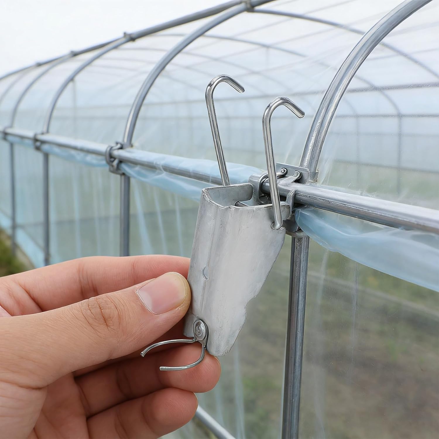 DescriptionGarden greenhouse clips and Greenhouse Hook Clips provide a flexible solution for hanging, fixing, and adjusting greenhouse sheeting. These Greenhouse Vent Film Fasteners are for frame pipes, offering steadfast support for greenhouse film, sunshade cloth, or netting. Their adjustable tension finish prolonged use outdoors, giving peace of mind against wind and weather challenges.Features-Color:Silver-Material:Aluminized zinc iron-Size:7.10X6.10X3.50cm/2.80X2.40X1.38in-Reliable Locking Mechanism: With Greenhouse Film Locking Clips, your greenhouse film remains fixed and stable, preventing accidental displacement and ensuring your crops are protected-Compatibility: Hanging Clips are specially compatible with standard 1/2inch greenhouse pipes, enabling fast and accurate positioning during installation-Protection: Thanks to durable aluminiumzinc alloy, these Greenhouse Film Fixing Hooks deliver extended resistance for many seasons of reliable use outdoors-Efficient Airflow Control: Greenhouse Hooks for Hanging are also for securing vent film, enhancing air circulation and maintaining stable interior greenhouse temperatures- : Twist Clip structure allows easy tension adjustment for film or netting, meeting various needs throughout changing weather and growing cycles