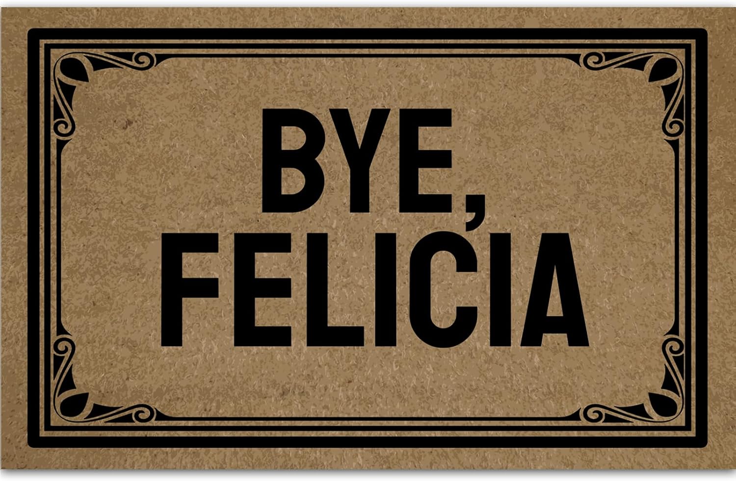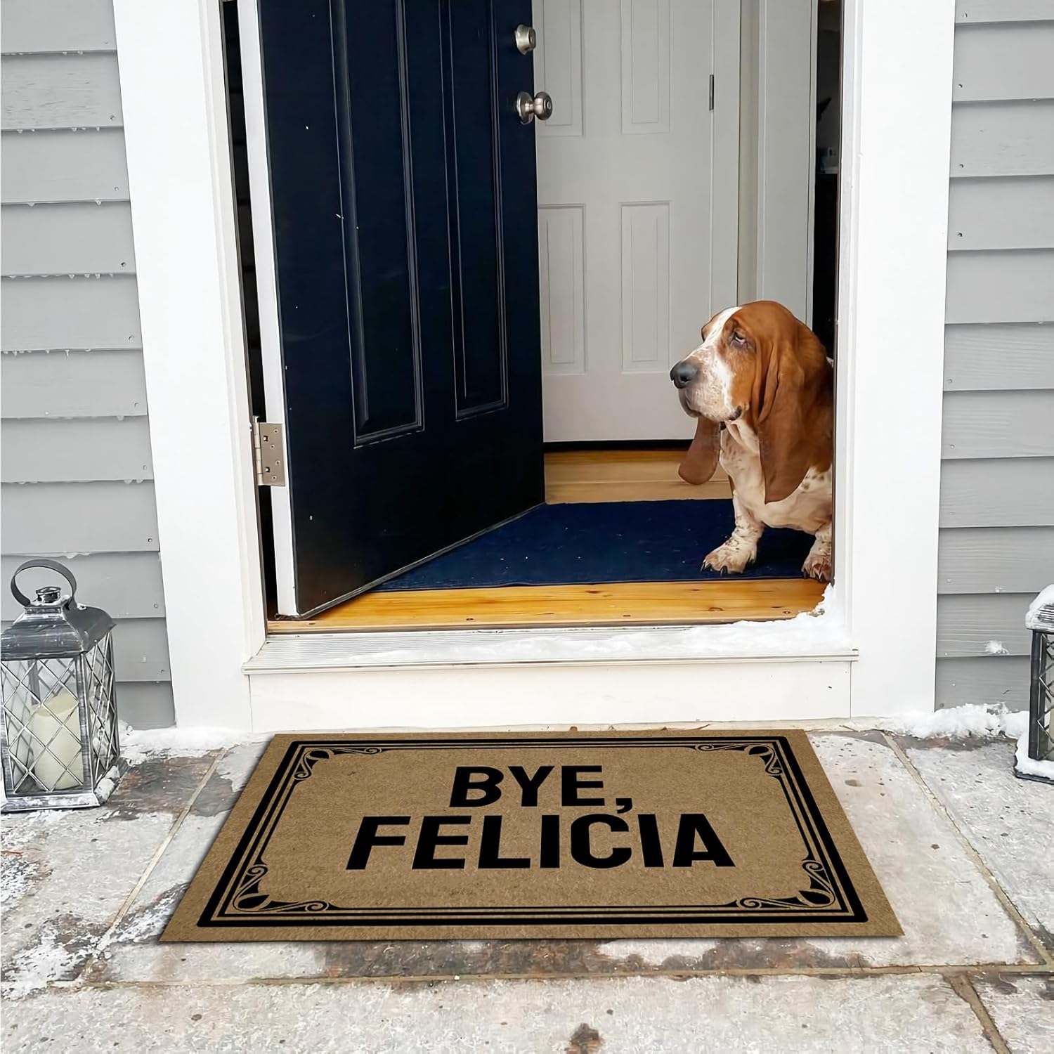 Package Including: 1 x Doormat with the text "Bye, Felicia"Material: polyester fiberSize: 23.6 x 15.7 inchesNote:Door mats indoor will make your home, house, farmhouse, kitchen clean and make you feel good. You can also give gifts to those you like on Christmas, New Year, birthday, Valentine's Day, all holidays and parties.Service: We aim to bring a great shopping experience to every customer. That’s our mission and honour to provide our customers with high quality products.